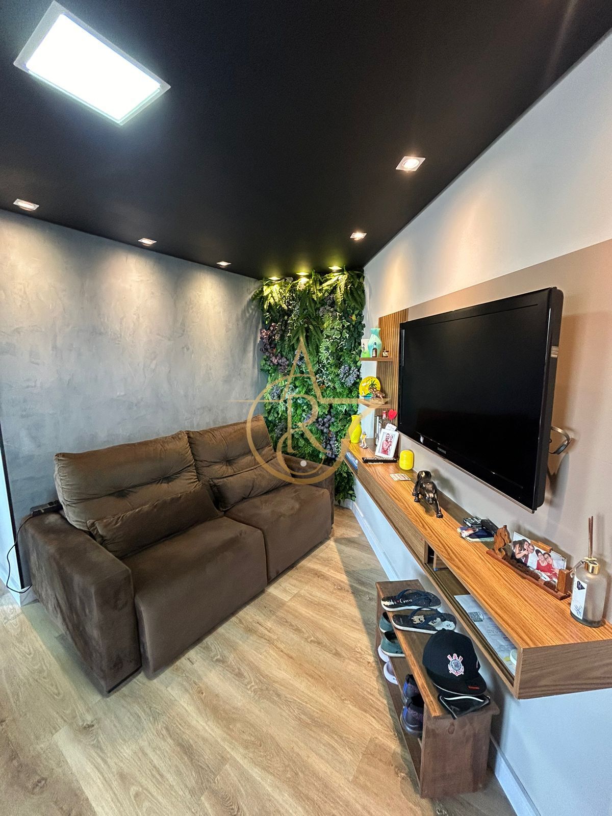 Acabamento: Pisos (porcelanato e vinílico), teto rebaixado com manta acústica, espelhos e cimento queimado, sacada com envidraçamento de persianas automática e wc com box até o teto;