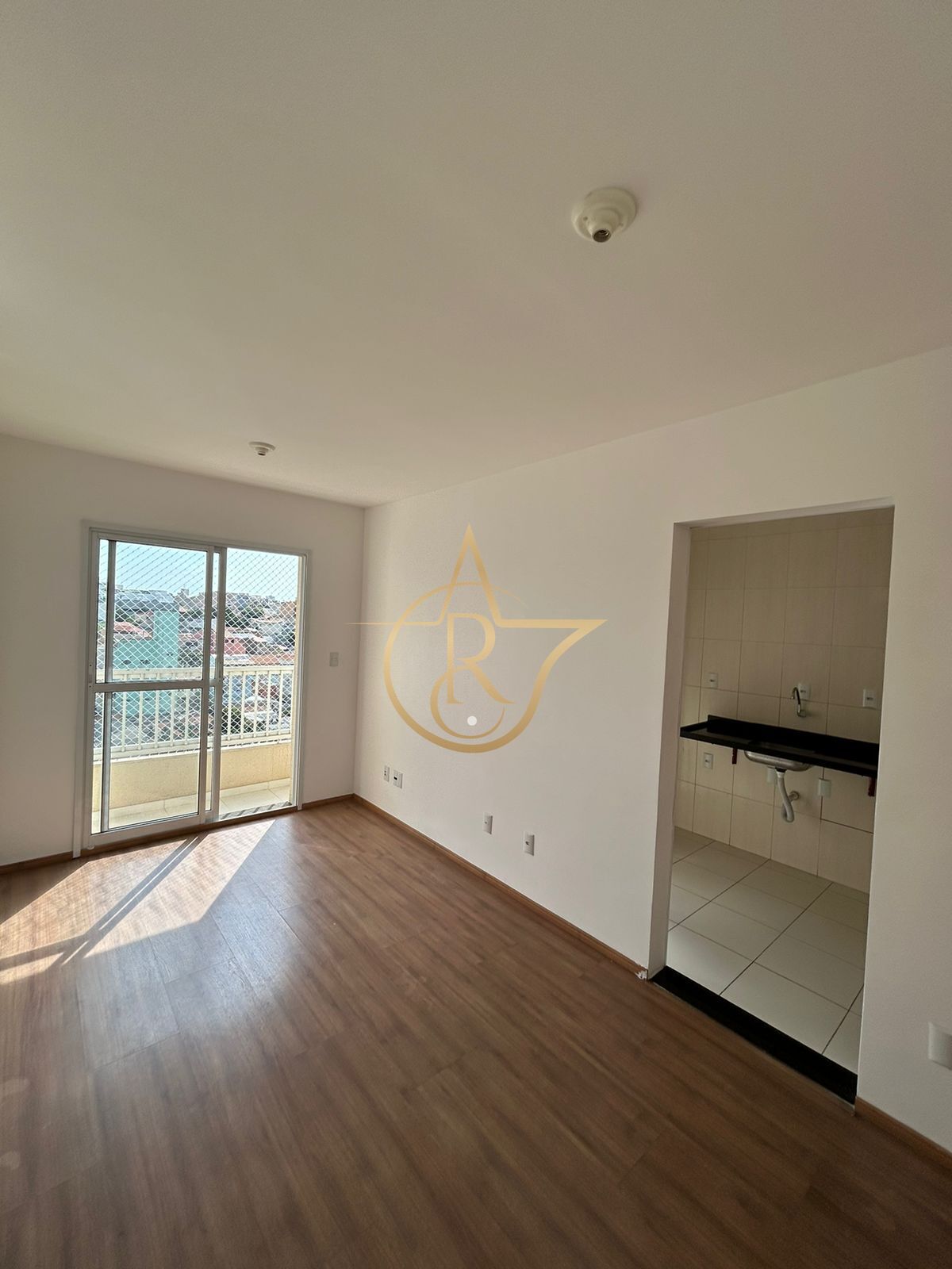 Apartamento com 53m² - Cozinha, área de serviços, sala de jantar e estar com sacada, 2 dormitórios, banheiro social e 1 vaga de garagem coberta.