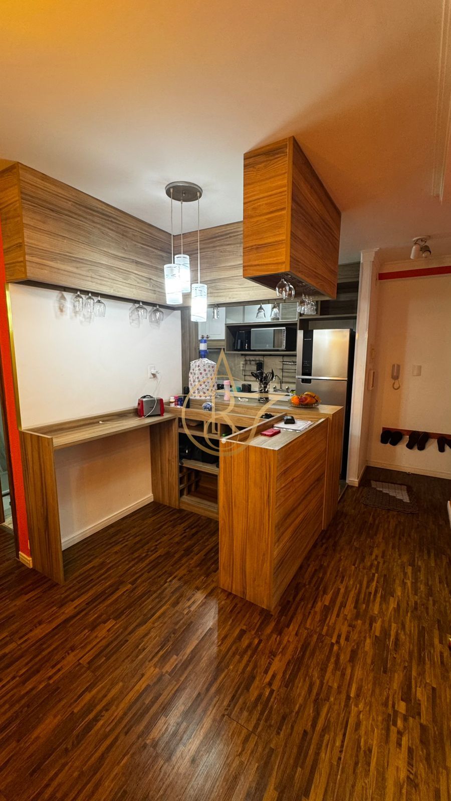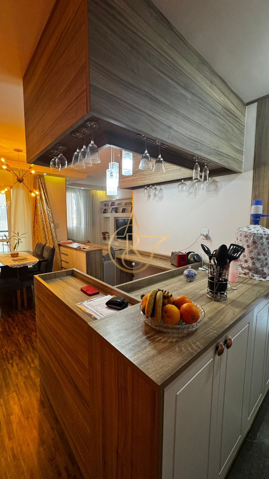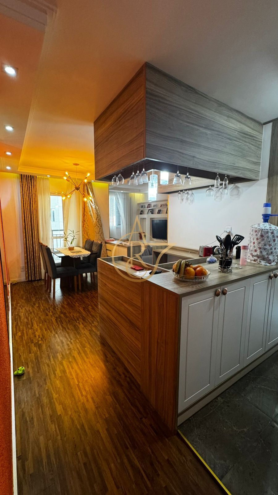 Possui 66m² - 3 dormitorios (sendo um suíte e outro ampliado a sala), sala de jantar e estar com sacada, adega, cozinha, WC social, quintal privativo coberto e 1 vaga de garagem.